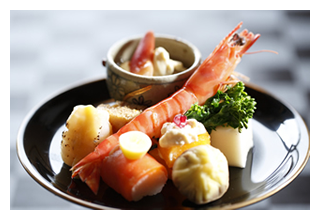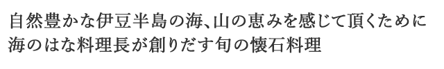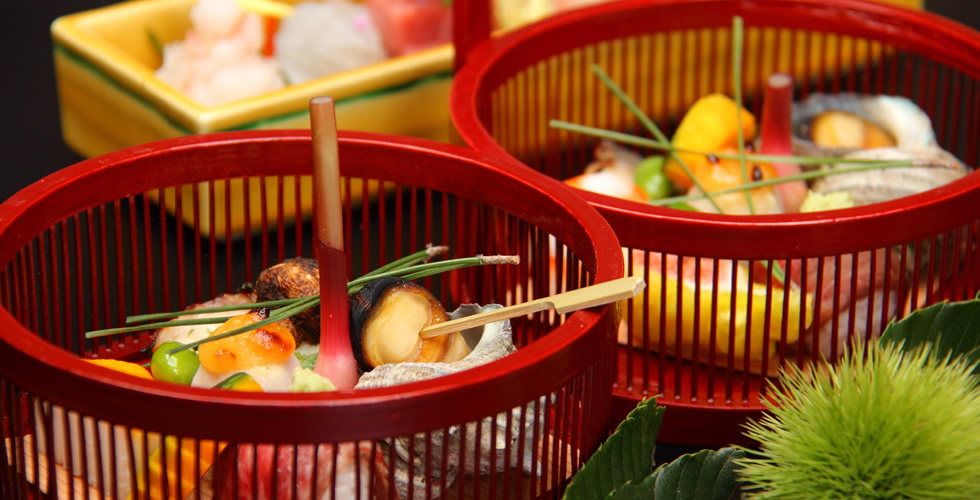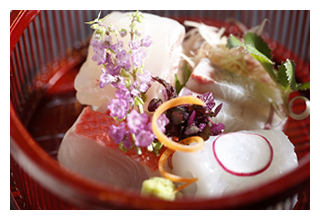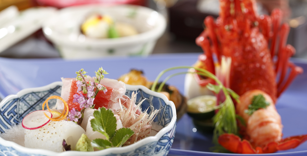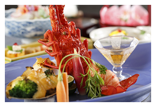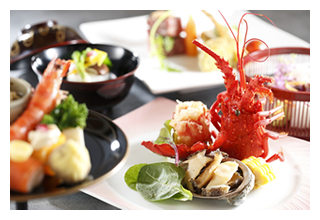 ![]() 新鮮魚介類当地で採れたての伊勢海老や鮑をはじめとした新鮮な海の幸は、料理人選りすぐりの特選素材 |